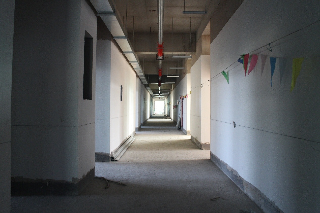 食堂首层内墙砌筑样板施工完成,各层楼板支撑脚手架拆除完成。