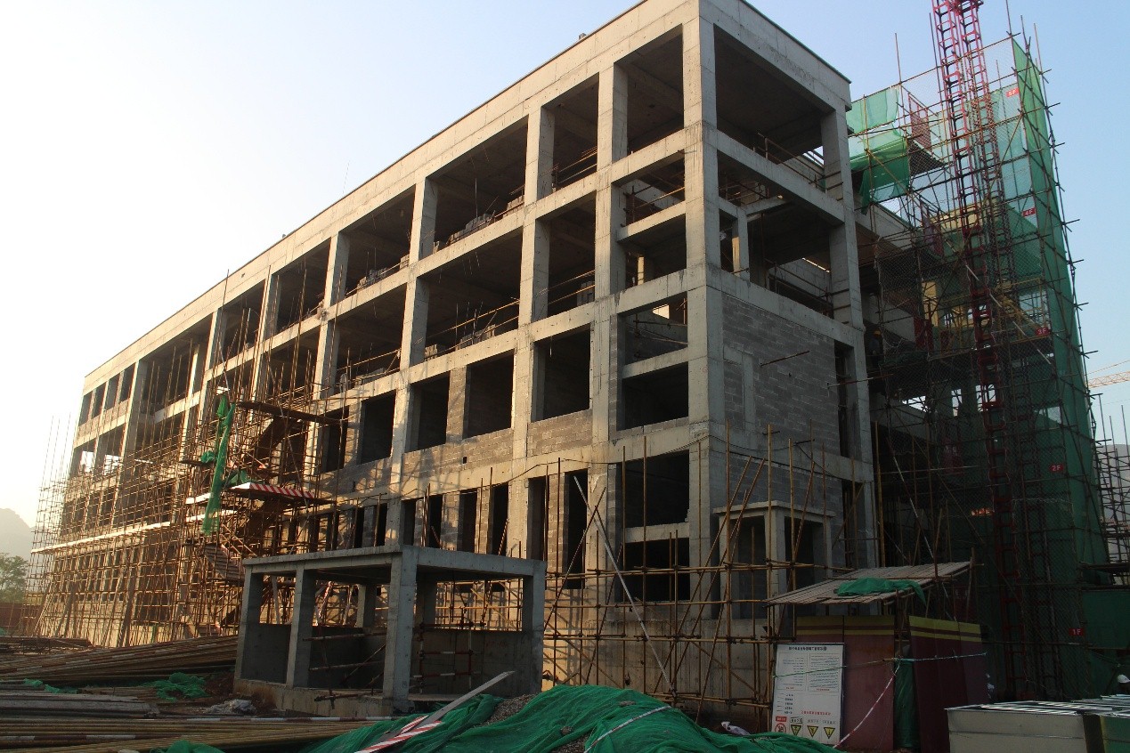 青年教师及留学生宿舍主楼及地下车库地下结构全部完成;A座东段进行二层顶板钢筋绑扎,西段进行二层墙体模; B座二层结构完成,东段二层顶板钢筋绑扎,西段二层墙体钢筋模板;E座施工至四层;F座施工至五层。