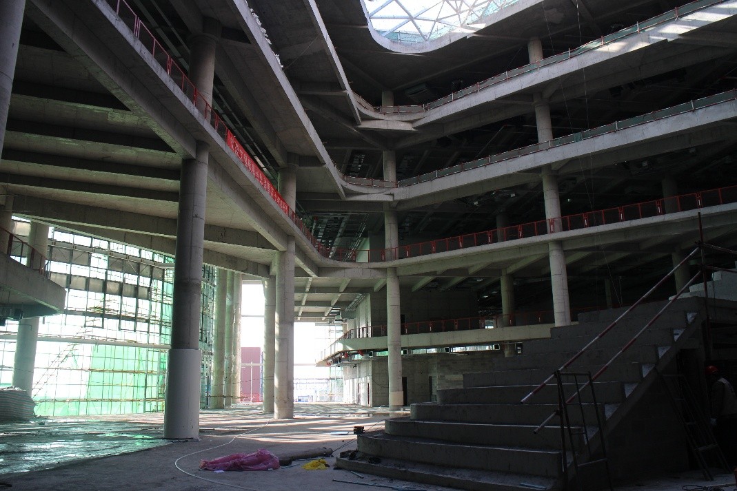 第一食堂后厨区地面完成25%,精装样板施工完成70% ,防水及保护层施工完成45% ,西校门人防通道结构施工完成80%。