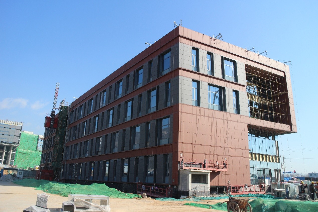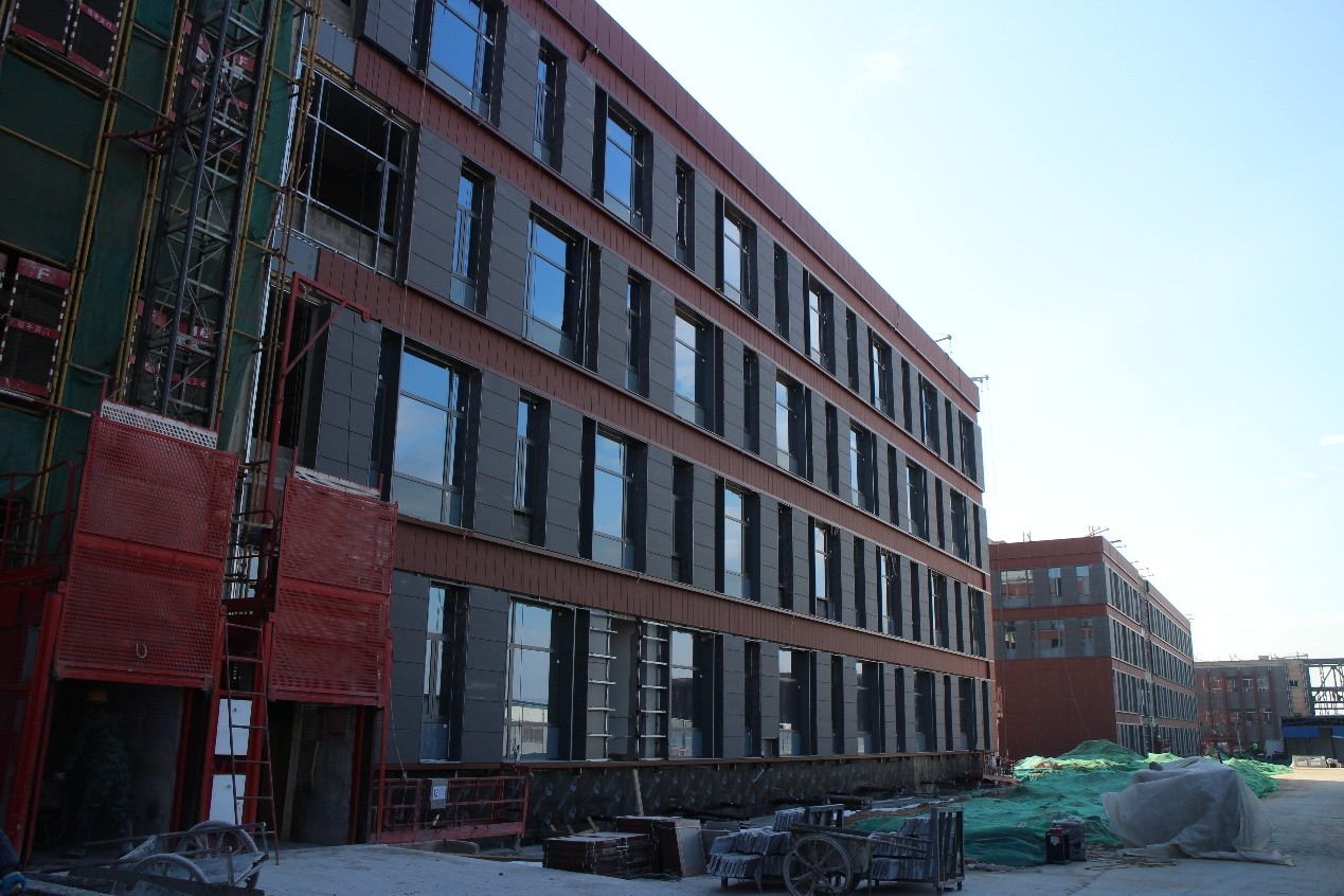 1#、4#实验楼压型铝板完成,陶板、铝板除首层下口及电梯口部位、铝窗差卫生间、楼梯间部位,陶棍及屋面栏杆未安装,均安装完毕;1#楼卫生间防水完成;4#实验楼地面垫层完成5%。