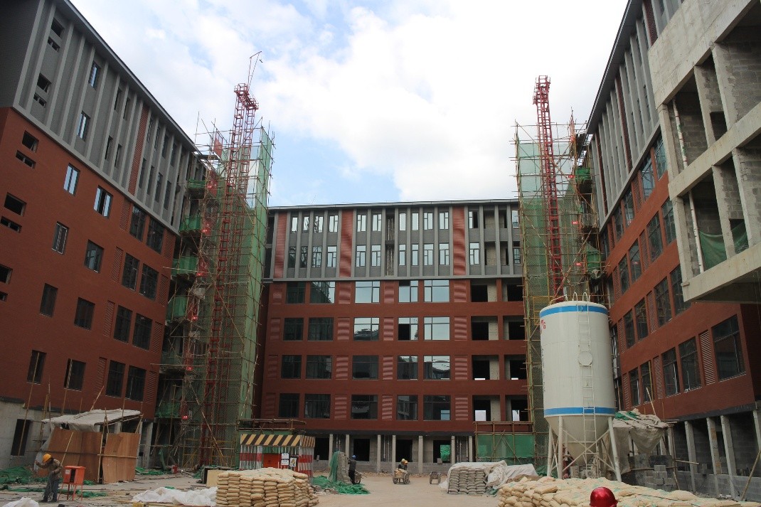 青年教师公寓1、2#汽车坡道施工完成25%;A、B栋砌筑完成10%,A、B栋之间及南北两侧小市政完成90%;E、F栋砌筑完成32%,外窗附框安装完成25%,南北两侧小市政完成32%。