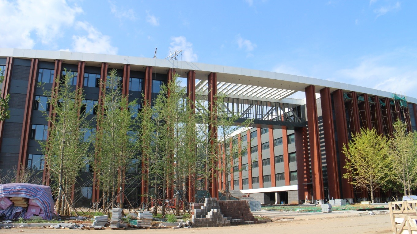 图书馆外幕墙东面原电梯口部位铝板安装完成,陶板完成80%,汽车坡道顶部玻璃安装90%;室内硅酸钙板变更铝板安装90%;二、三、四、五层铝方通完成95%,楼梯间栏杆完成,空调机房吸音板完成80%;人防通道抹灰打底完成。工程训练中心消防控制室卫生间地砖和墙砖完成,门窗完成;配电室砌筑完成,垫层完成,腻子完成;给排水、采暖工程首层垫层下的管线埋设完成。