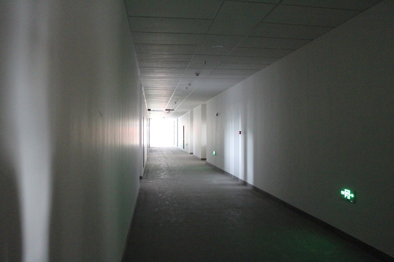 青年教师及留学生宿舍正在进行墙面硅藻泥、走廊背漆玻璃及走廊吊顶施工。