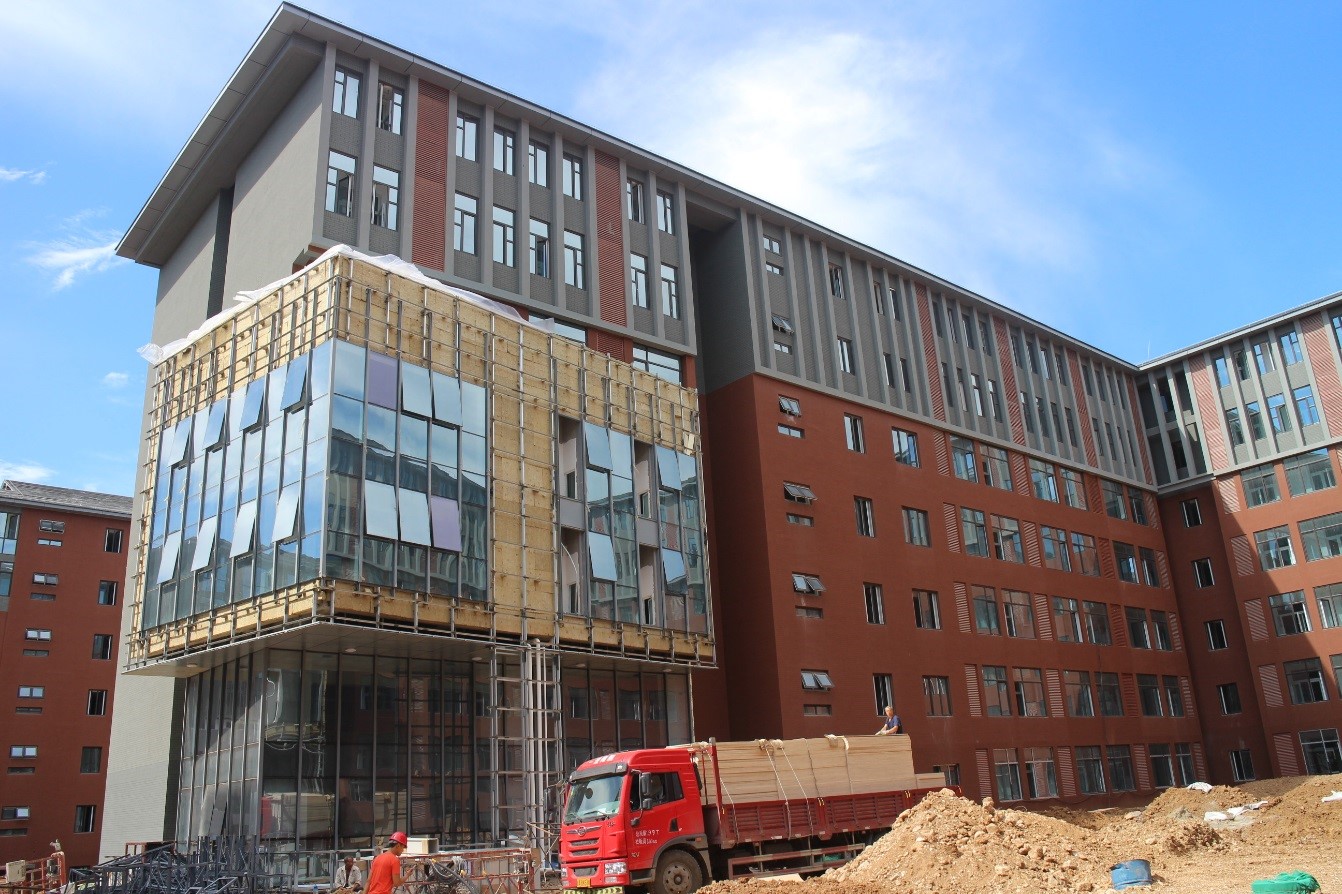 1#、4#实验楼已经具备实验设备进场安装条件,实验设备样板已经运进实验楼;入口门厅硅金板龙骨完成,仿清水砼完成85%,室内空气检测完成;洁具安装完成,散热器基本完成;空调系统风阀完成,风口基本完成。
