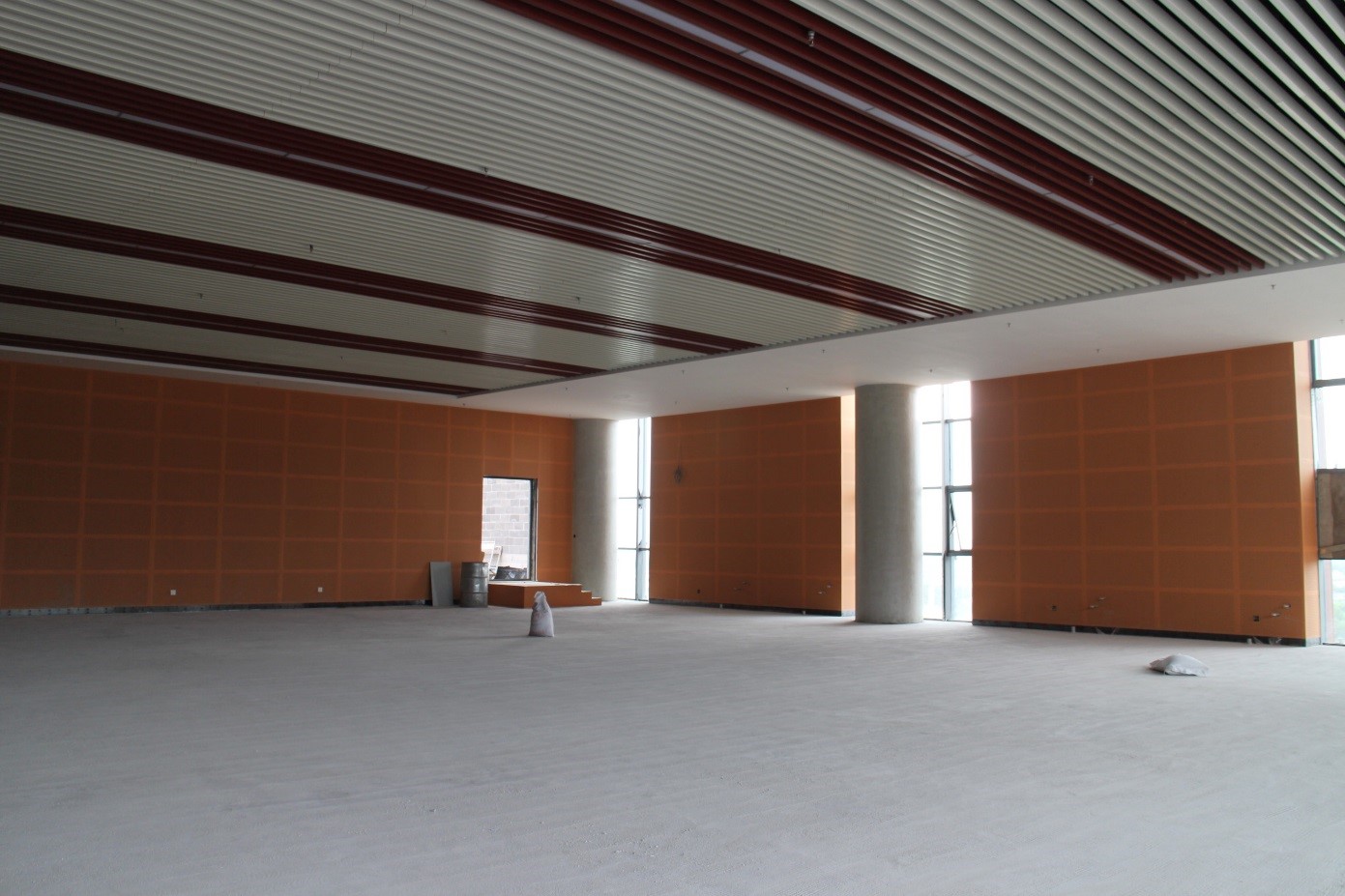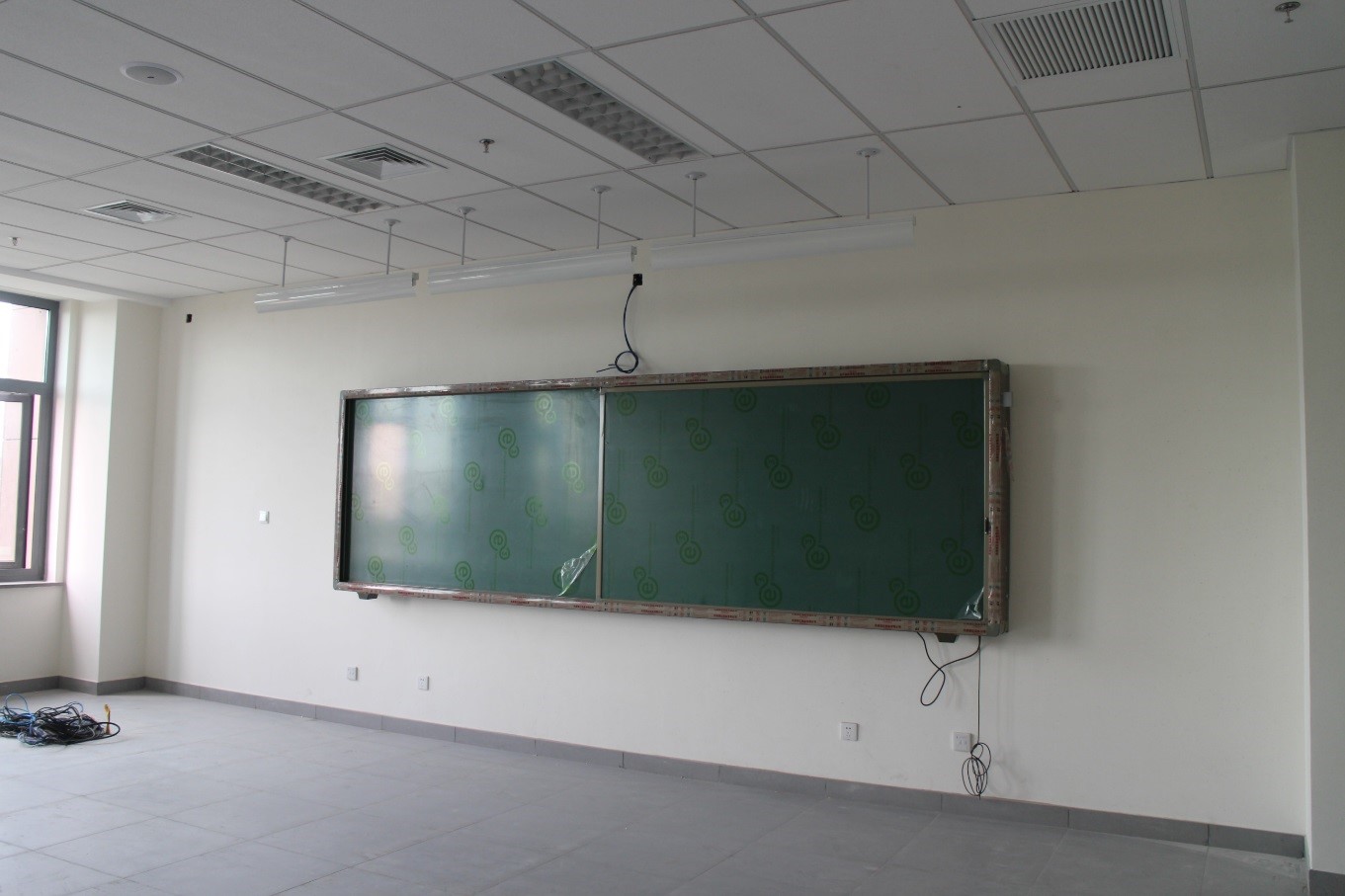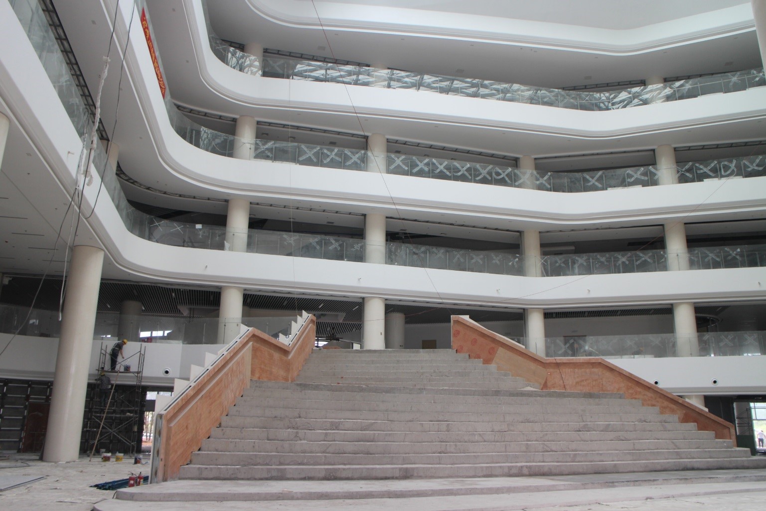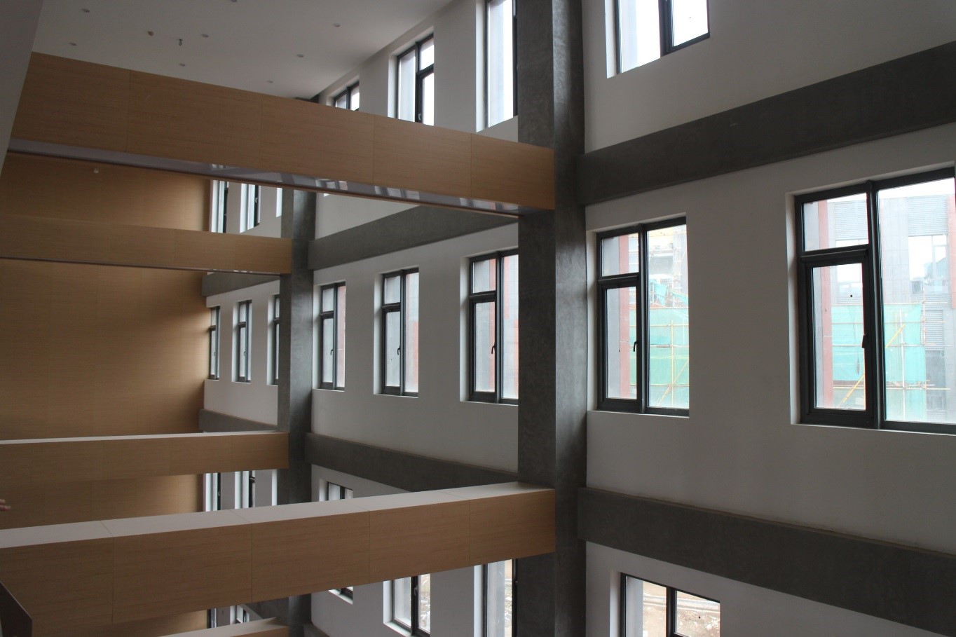 教学楼墙顶涂料及硅藻泥完成75%,精装修硅金板安装完成55%,幕墙除东西露台部位铝板包楼梯及A区内环室外楼梯包铝板及防火门、玻璃门安装以及收边收口未完,其他完成。