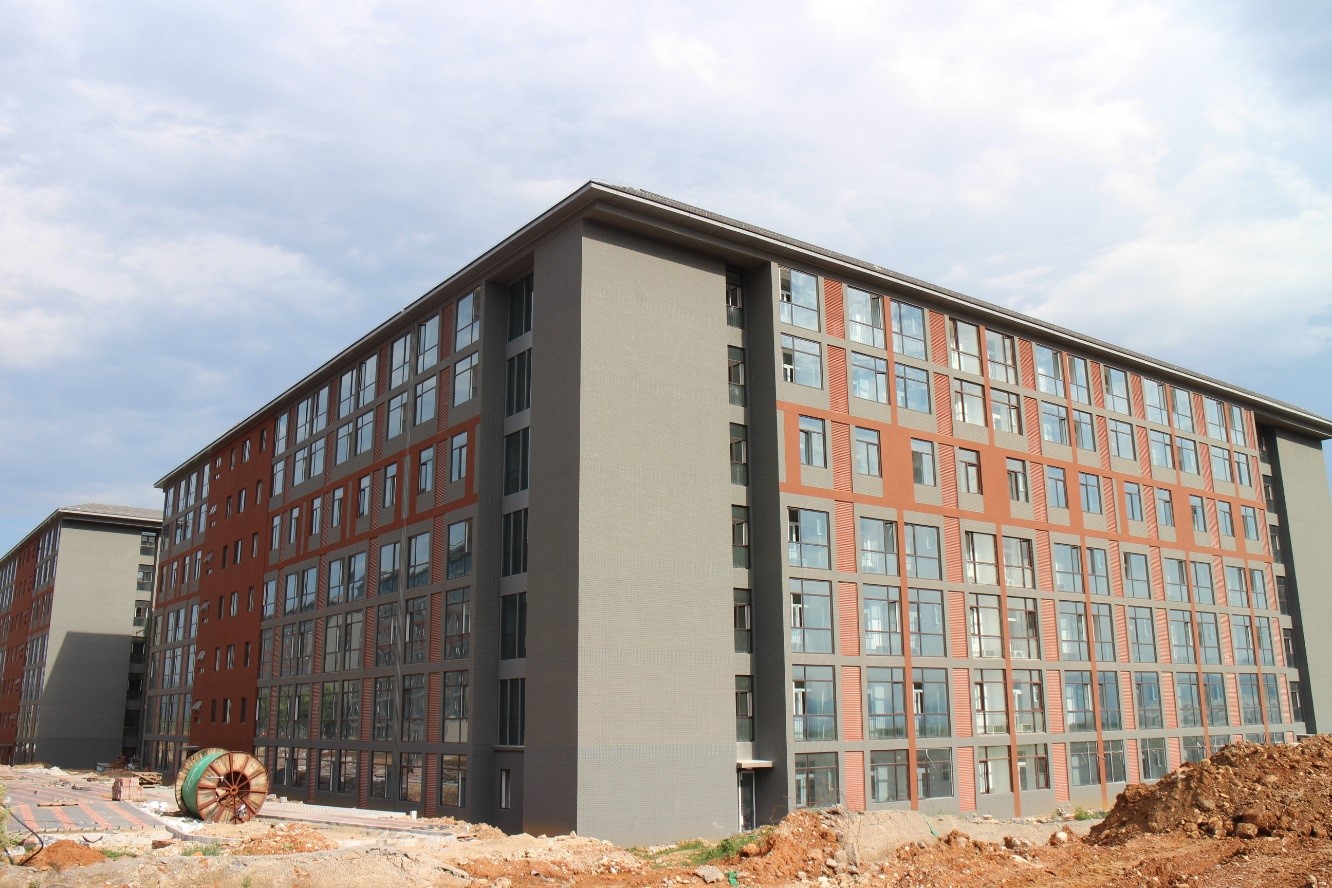 学生公寓外窗框安装完成,玻璃安装完成,幕墙玻璃安装完成,质感涂料基本完成,GRC板已经到货,3、6、2号楼正在安装;屋面钢结构主框架完成,檐口铝板基本完成,檩条施工完成,防火涂料继续施工,挂瓦施工完成65%;卫生间墙地砖基本完成;电梯安装全部完成。