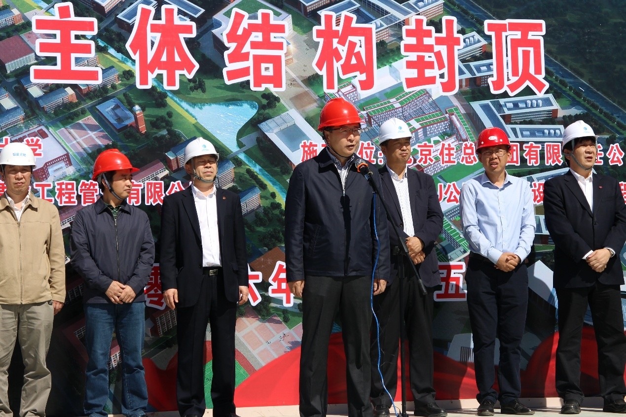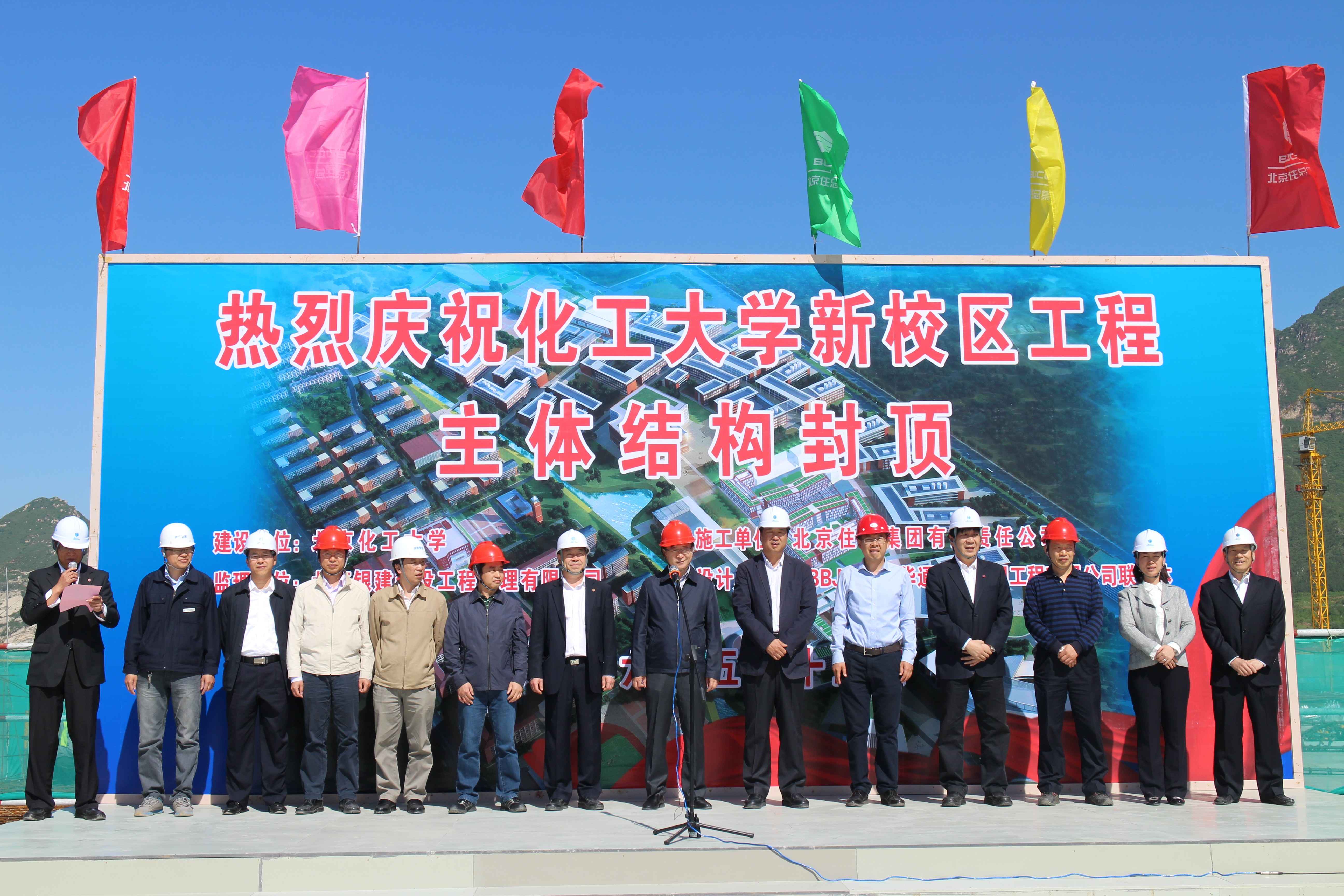 5月15日上午,昌平新校区举行了第一教学楼项目主体结构封顶仪式。北京化工大学校长助理、新校区建设指挥部总指挥李新军、北京住总集团工程总承包部党委书记雷宏宇、总经理朱晓伟、北京银建建设工程管理有限公司总监曹阳等出席封顶仪式,住总集团总承包部副经理、第一教学楼项目经理鞠东主持封顶仪式,新校区建设指挥部招标办、工程部、技术部负责人参加了封顶仪式。