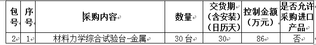 1. 项目名称:北京化工大学昌平新校区第一实验楼机电工程学院基础力学、机械设计、金相与公差实验室教学仪器设备采购项目(第2包)。